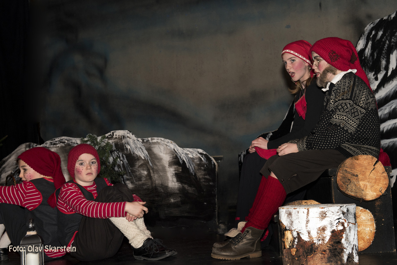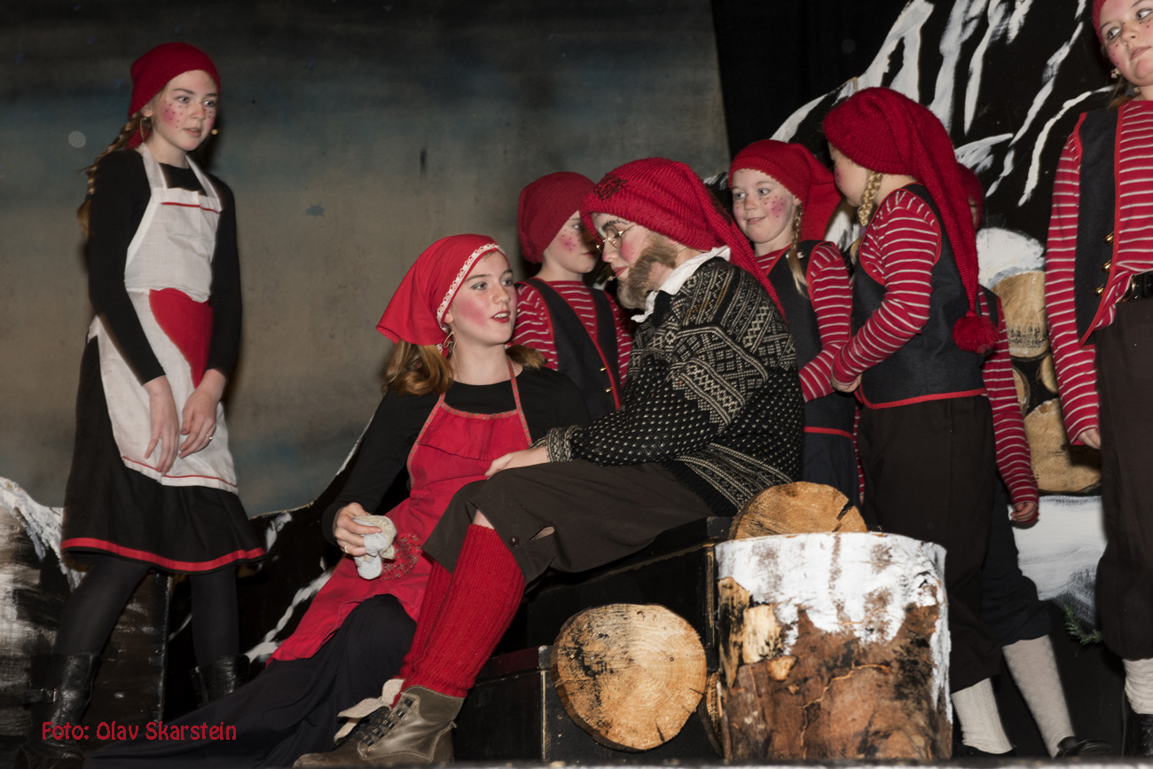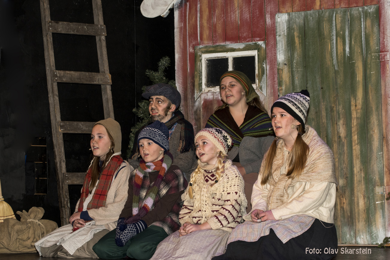 Dette er ein fest som mange vil vere med på, full sal og stor forventning då lyset i salen vart dempa og 30 born (3-6. klasse) entra scena. Nissar og troll og ein liten familie. Før skodespelet song dei ein flott adventsong som Elias Rogne har skrive for mange år sidan. Skodespelet i år er Dei fattige si jul.