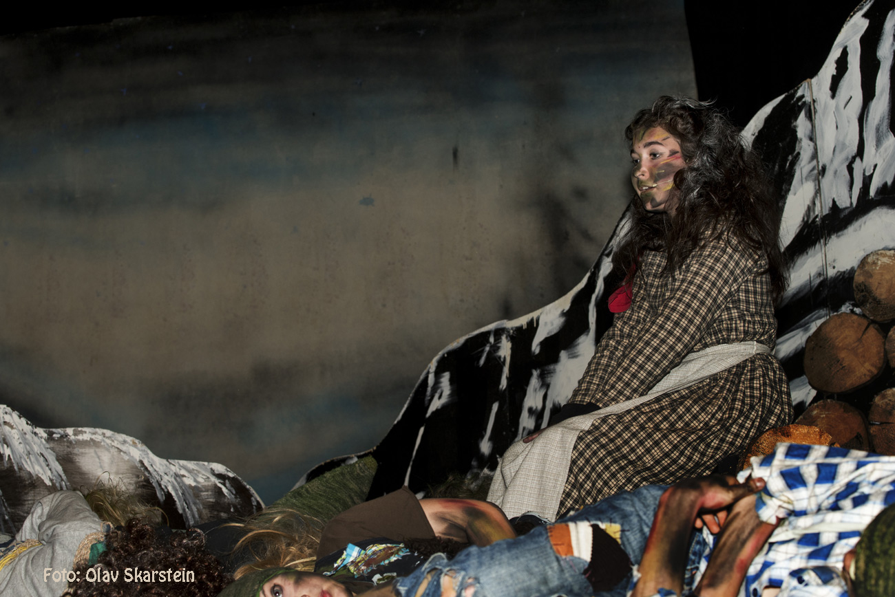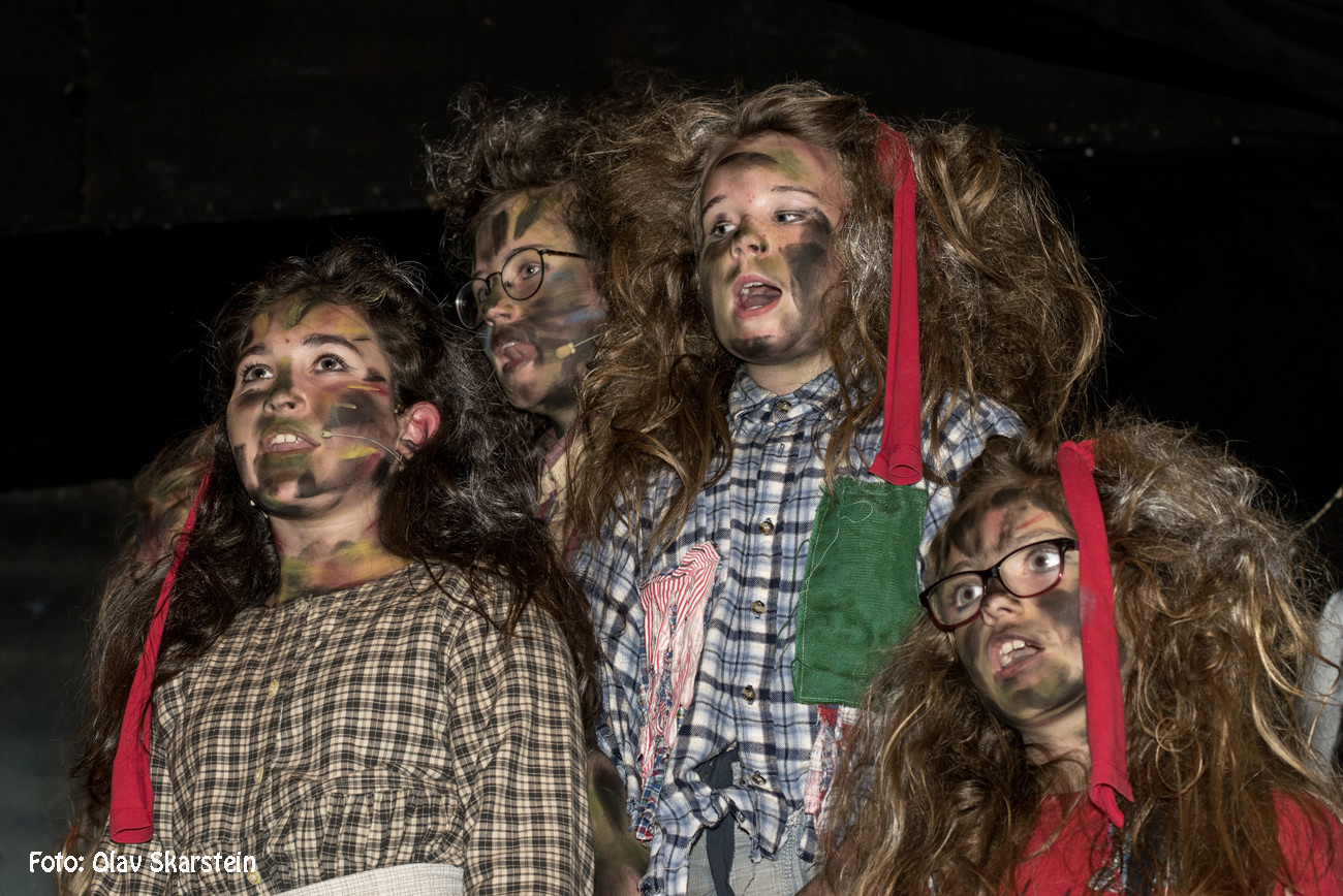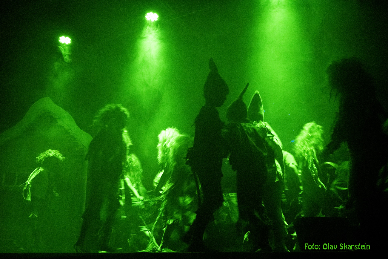 Skogstrolla med Slurperapp! Trollmor Hannah Aksnes, ”Frekkerik” Wiktoria Bednarek, ”Erterik” Iselin Davik og ”Fniserik” Thea Hatlehol.