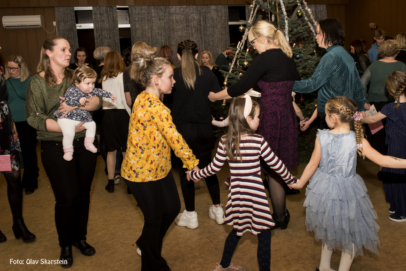 Siste post på programmet var gong rundt juletreet med kjende og kjære julesongar.