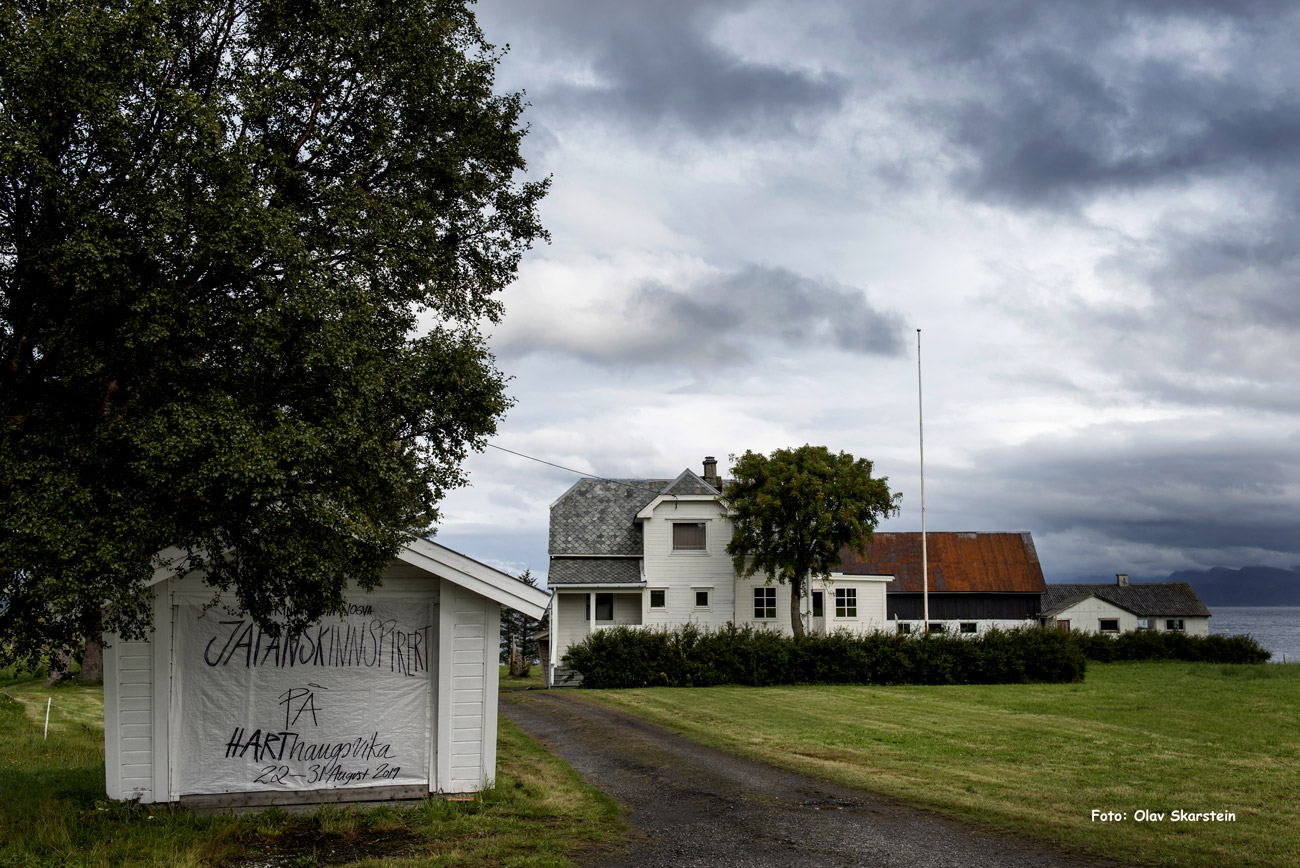 Kunstsenteret i Molde tildeler og betaler årleg 4 prosjekt. Prosjektveka i Harthaugvika er eitt av dei og Japanopphaldet er utgangspunktet for prosjektveka. Karin fortel at tema i prosjektet ikkje var bestemt på førehand. Det vert utvikla og forma under vegs med inspirasjon frå det lokale i Vika, eple i hagen, tare i fjøra og besøkande. Ja, mange hadde vore innom. Denne dagen 4 skuleklassar frå Haramsøy Skule og ei skuleklasse frå Aalesund Kunstfagskole.
