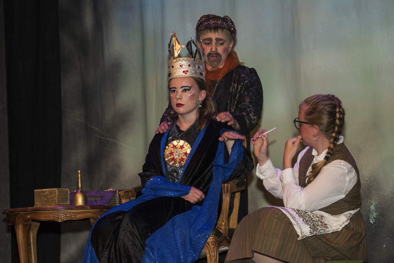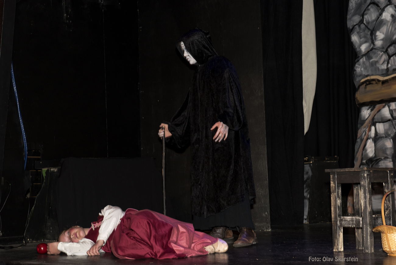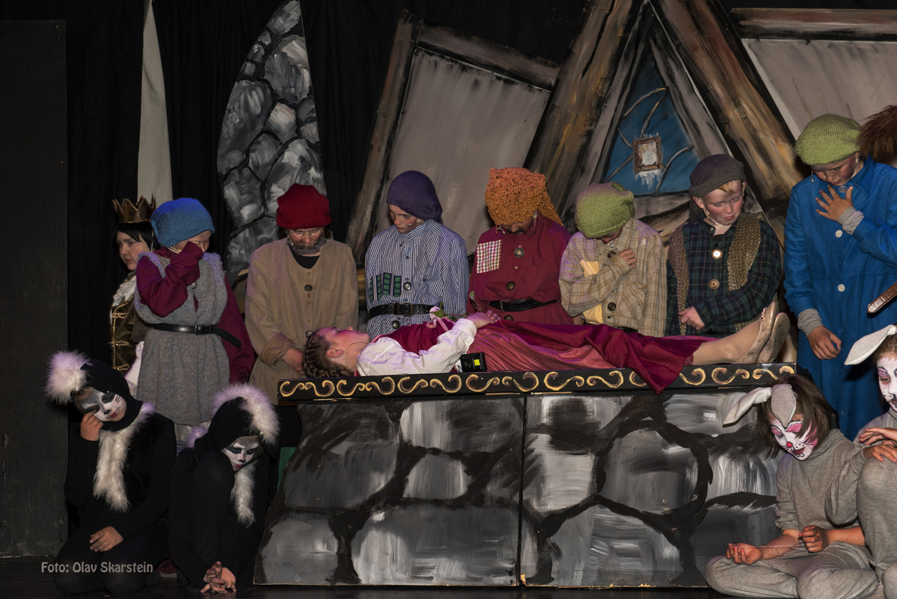 Når ein i tillegg har flotte kostymer, god sminke og elegante kulisser som ein med enkle grep skifter scene frå slott til hytte i skogen. Då er elementa på plass!