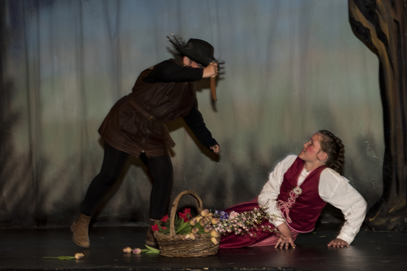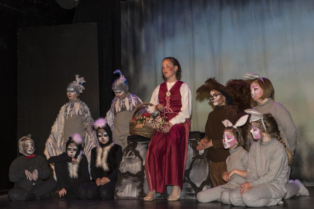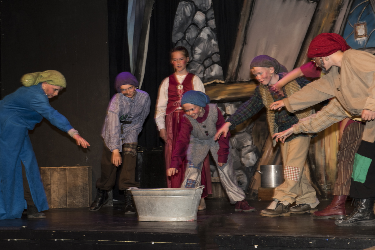 Når ein i tillegg har flotte kostymer, god sminke og elegante kulisser som ein med enkle grep skifter scene frå slott til hytte i skogen. Då er elementa på plass!