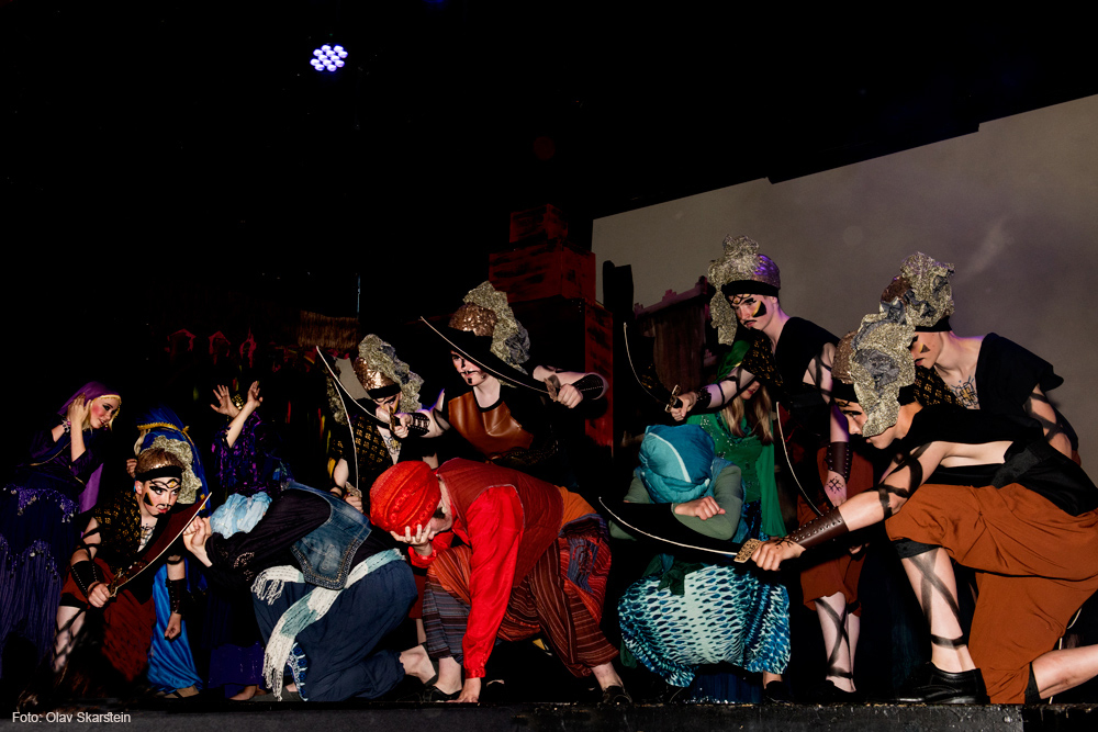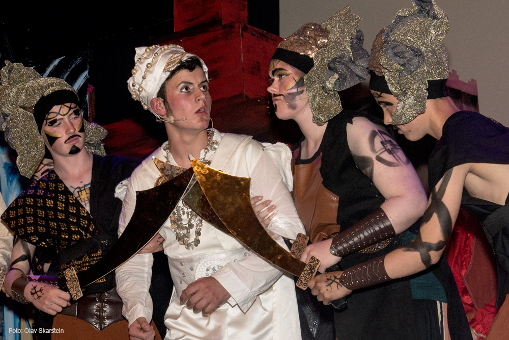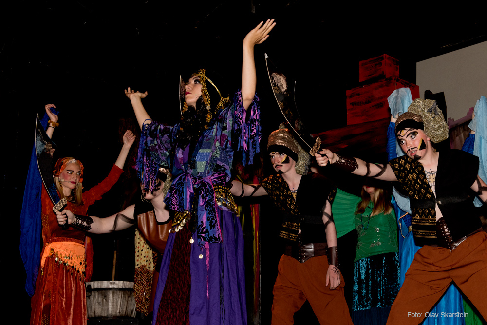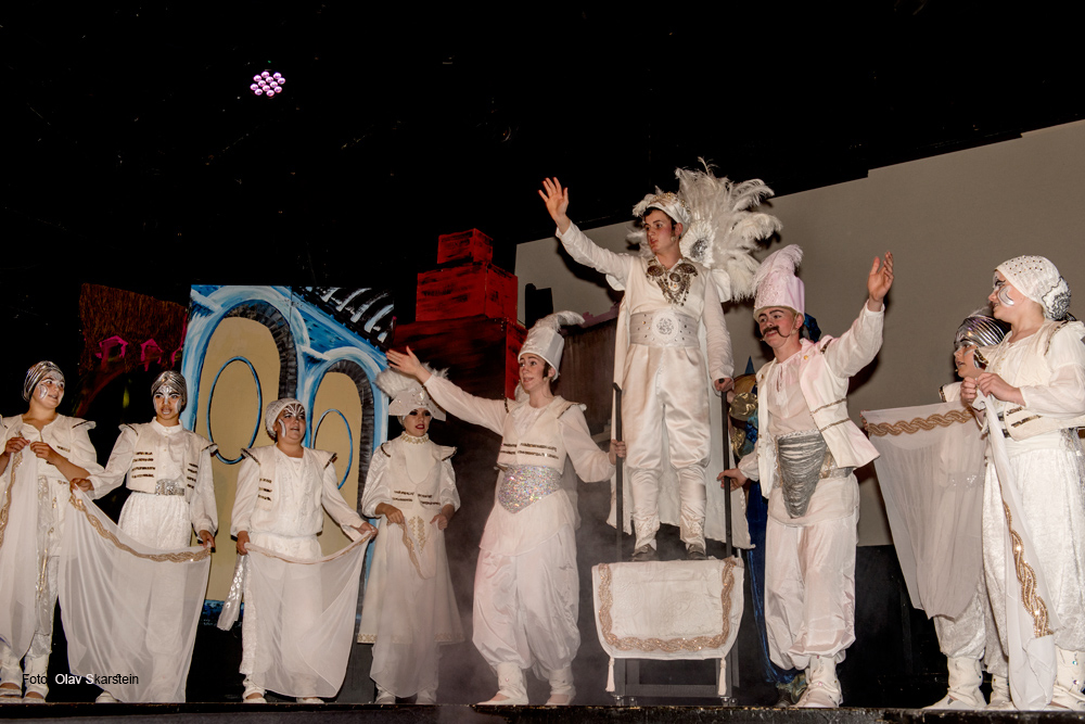Aladdin har fått prinsessa. Manal (Mari H.Bergheim), Isir (Vilde Ravnestad),Rajah (Synne U. Otterlei), Omar (Torbjørn H.Aakre), Babkak (Martine Aakre), Kassim (Andrea G. Austnes), Jasmin (Kari N. Aksnes) og Aladdin (Knut N. Aksnes)