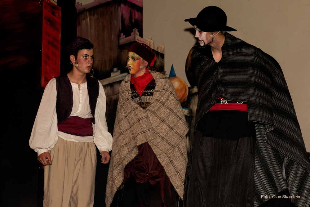 Sminke og kostymer er også i særklasse. Her har det gått med timevis med detaljarbeid. Dette er element som er med på setje dei unge aktørane inn i den tida dei lever seg inn i. Dei ymse scenebilda vert endra med elegante skiftingar av kulissar, frå slott til landsby eller grotte på ein blunk.